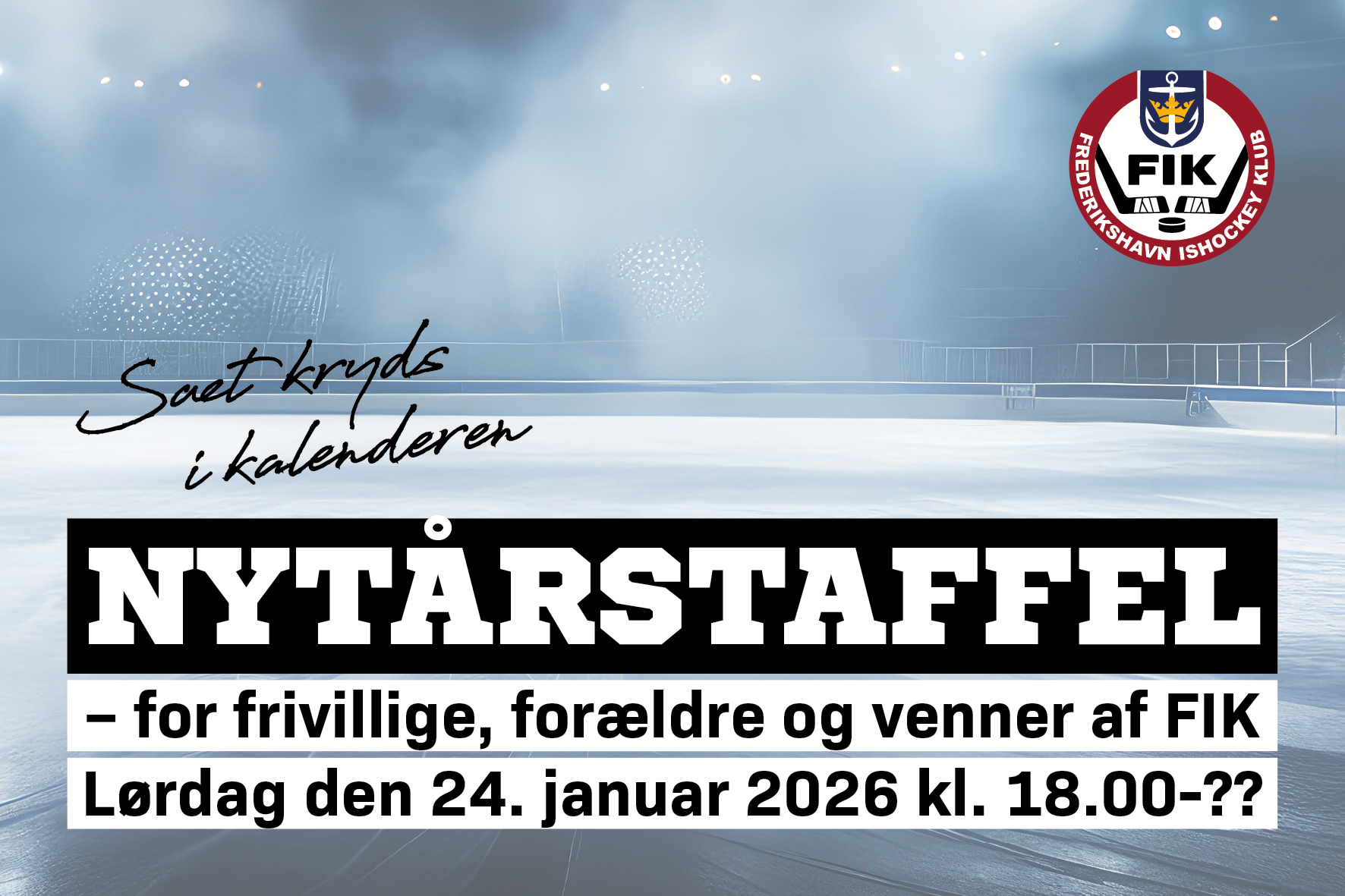 Frederikshavn Ishockey Klub inviterer frivillige, forældre og venner af klubben til nytårstaffel den 24. januar 2026.