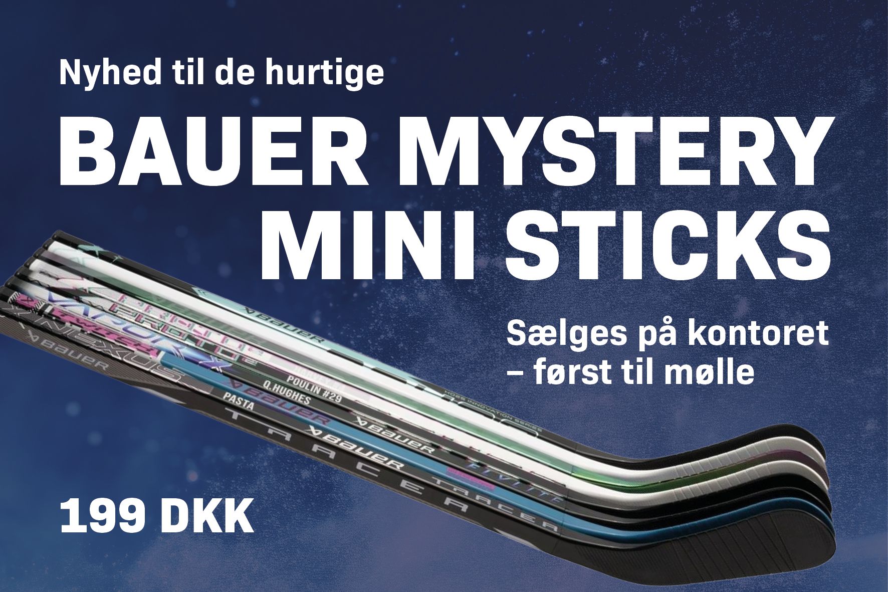 Vi har fået lovet at sælge et lille lager af spritnye Bauer Mystery Mini Sticks - vi har 24 stk. på kontoret – og de sælges først til mølle!